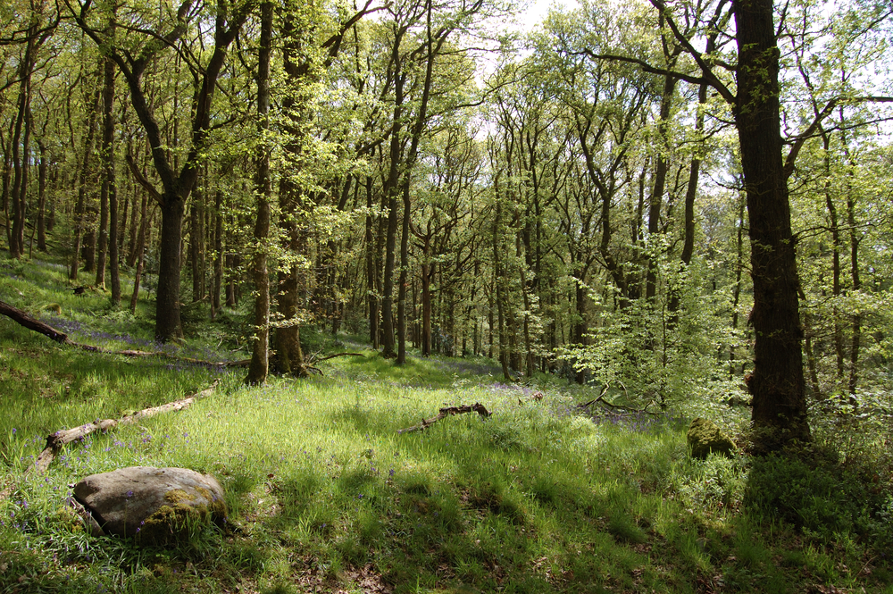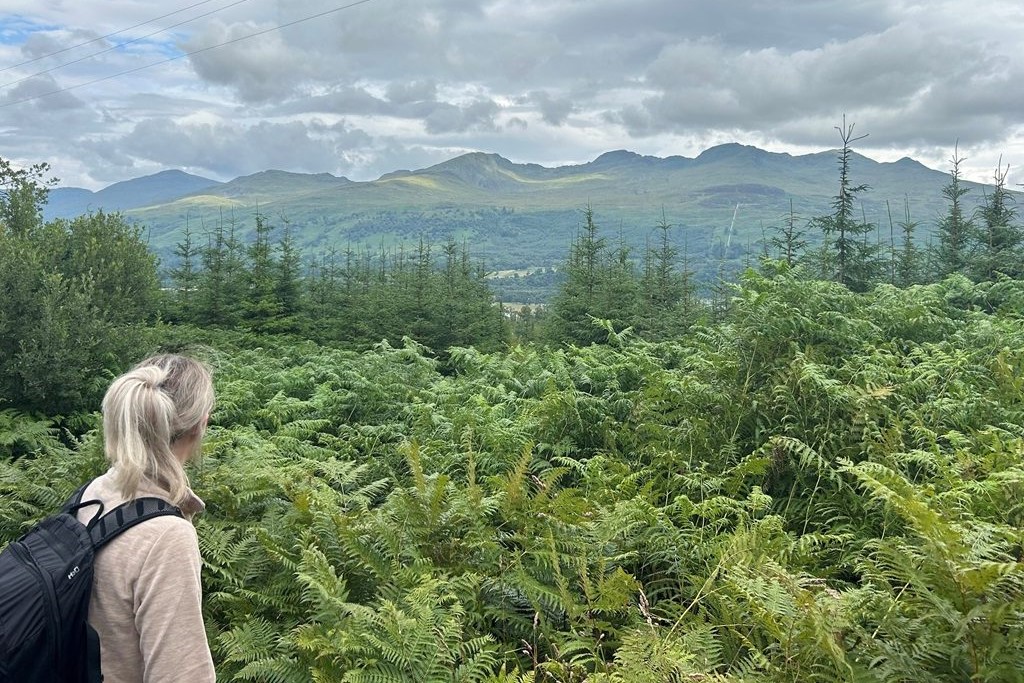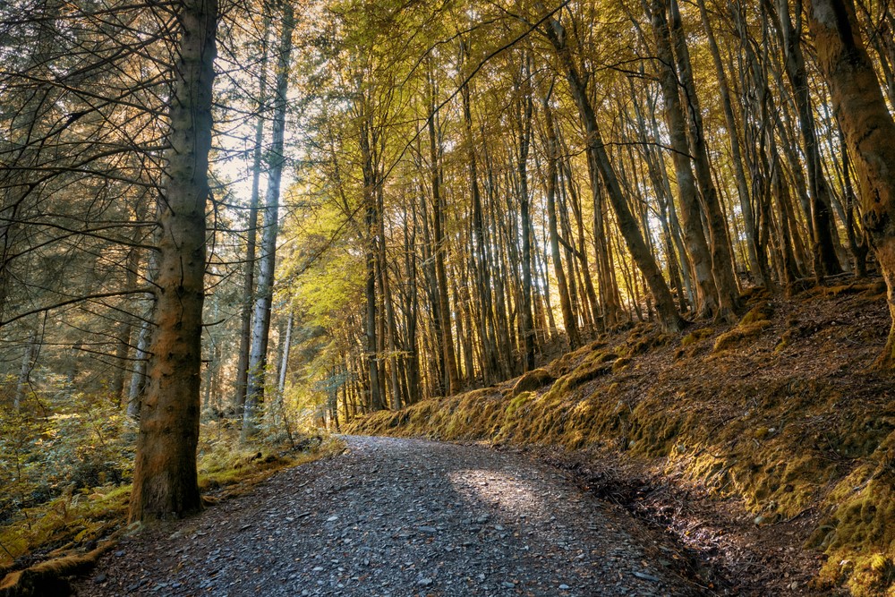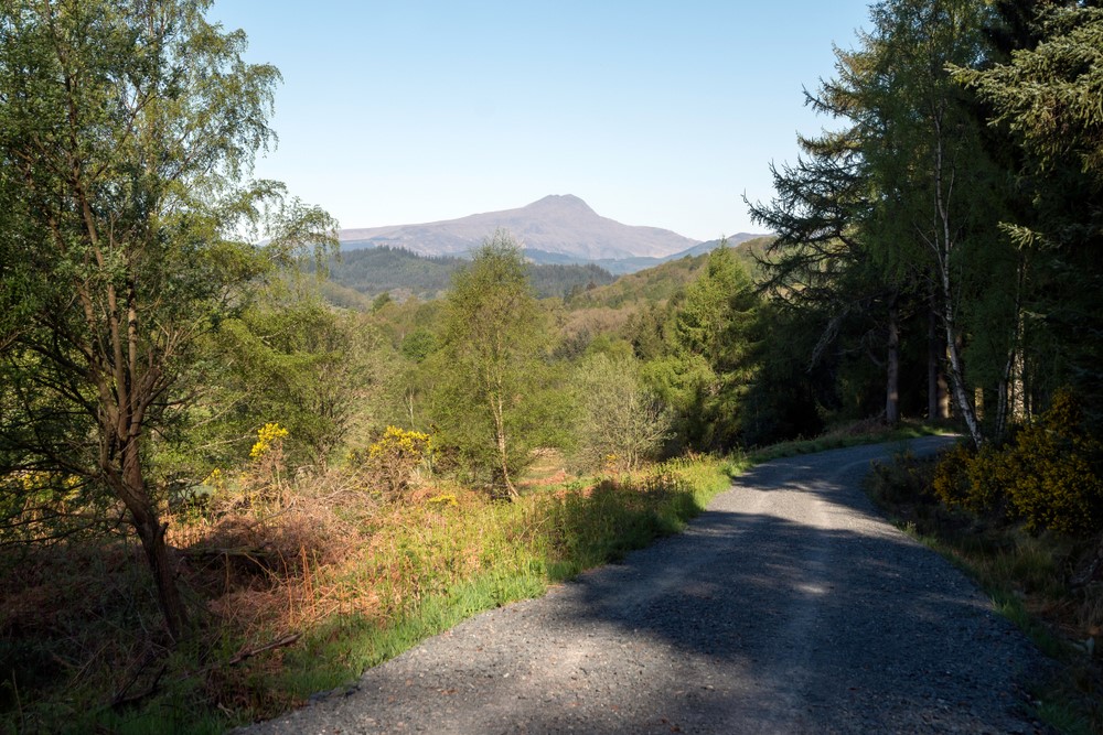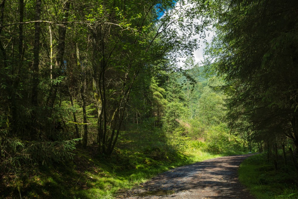 Wandel in de rustige bossen van Trossachs en Perthshire.